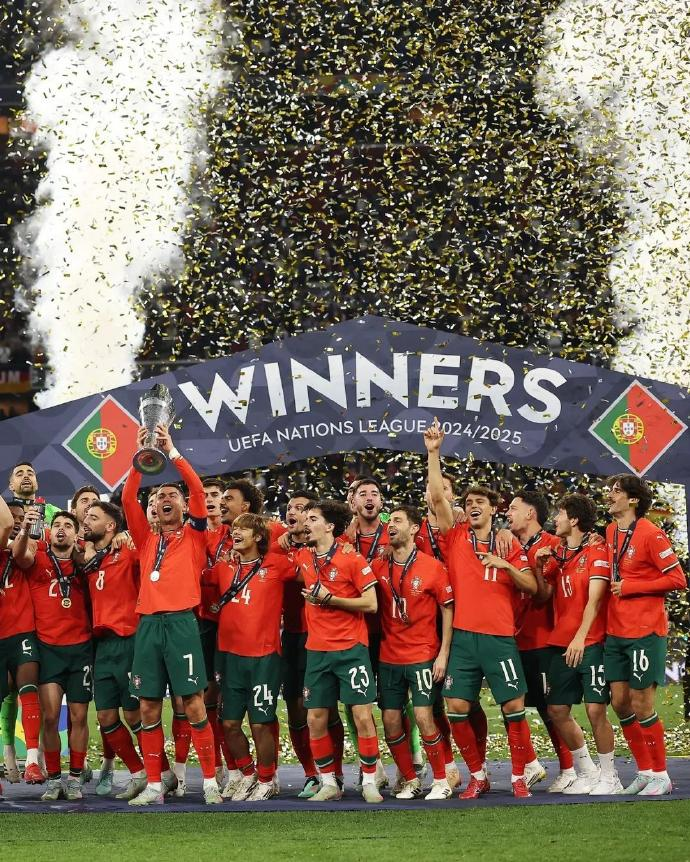 我们又做到了!第二次捧起欧国联的奖杯,属于葡萄牙的荣耀,再次刻进这段绿茵史。不是奇迹,是坚持;不是偶然,是一代又一代的传承与信念。我们,是欧国联历史上夺冠最多的那支队伍!