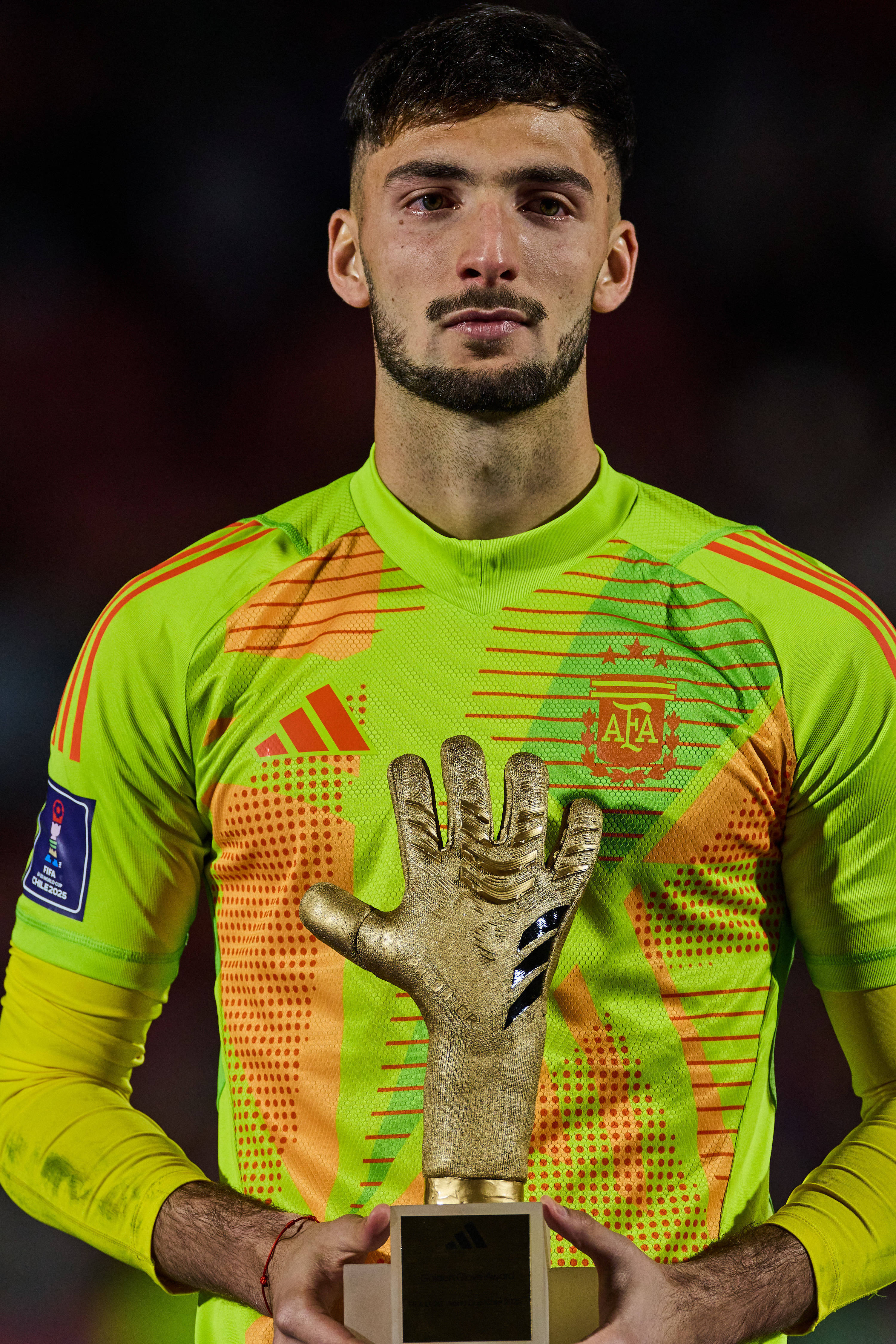 10月19日,阿根廷队守门员巴尔比获得赛事金手套奖。 新华社记者 孟鼎博 摄