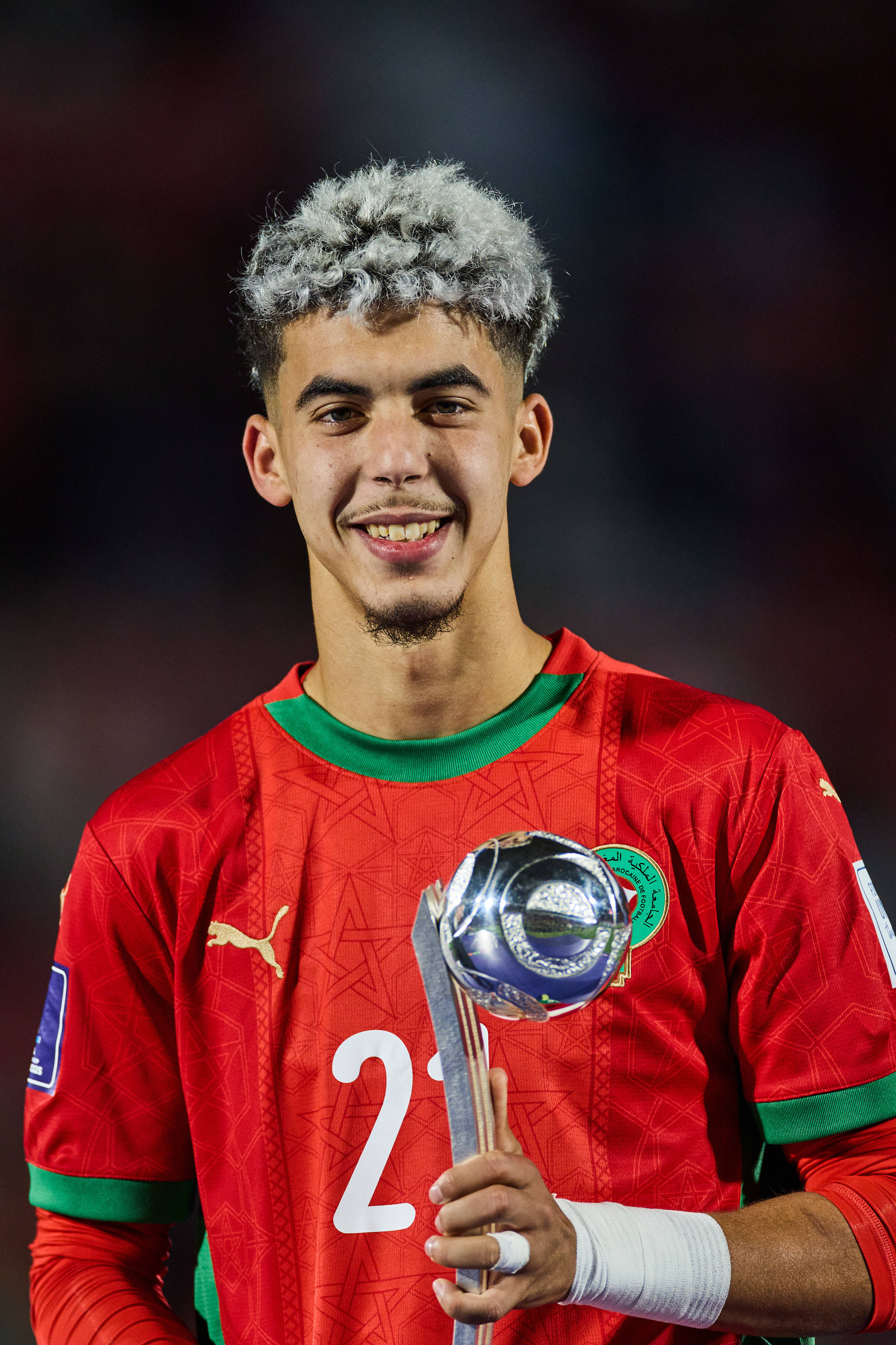 10月19日,摩洛哥队球员扎比里获得赛事银球奖。 新华社记者 孟鼎博 摄