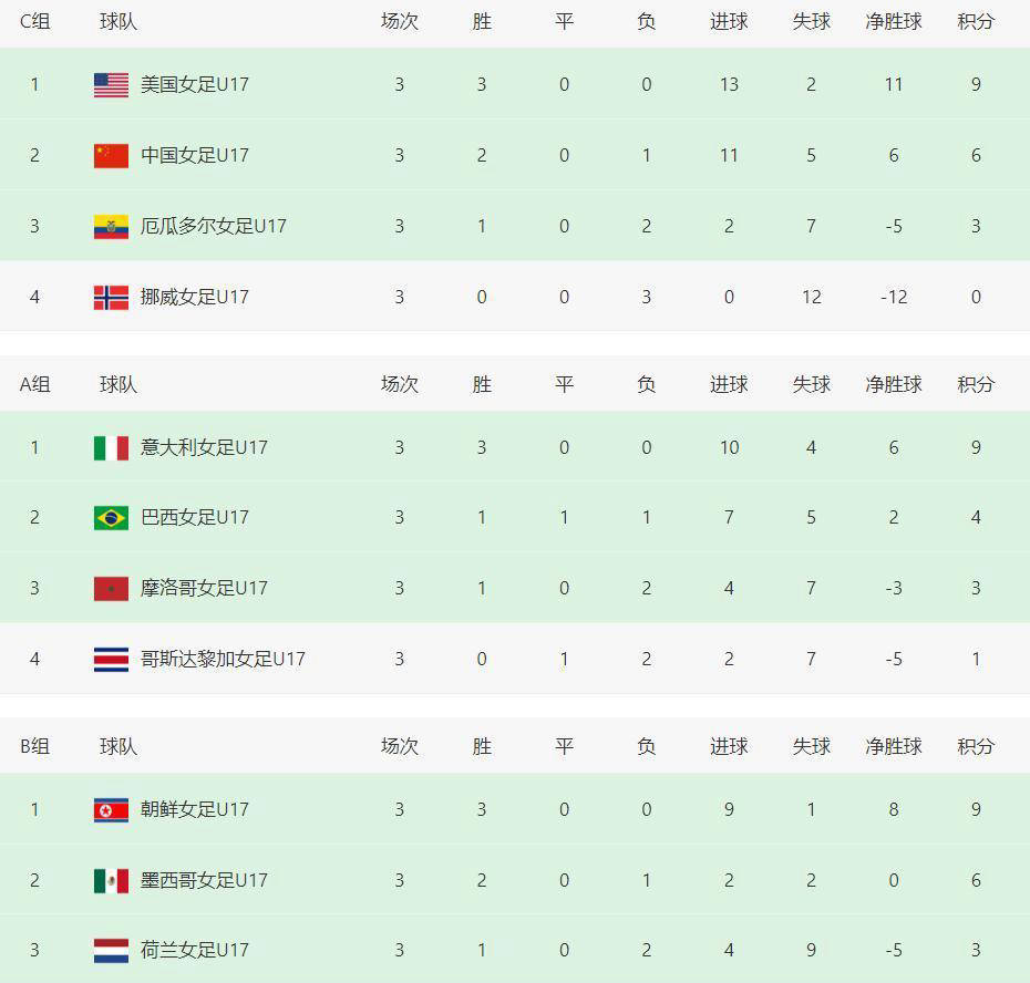 除中国女足外,这一夜还见证了墨西哥和摩洛哥的晋级。共有12支球队已经确定晋级16强淘汰赛。