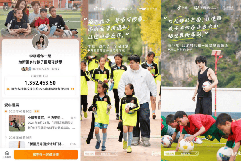 字节跳动公益平台相关负责人认为,足球公益项目的优势在于叙事积极阳光,能够契合公众情绪。“中国人对足球有长期的讨论和期待,这形成了一个社会共同认知。”除了足球,字节跳动公益平台还在青少年健康与教育领域有多维布局——“抖音先心病关爱行动”帮助2987名孩子完成手术,“抖音唇腭裂关爱行动”助力4245名患者完成手术,“抖音美育未来计划”则助力10万乡村儿童提升美育教学。