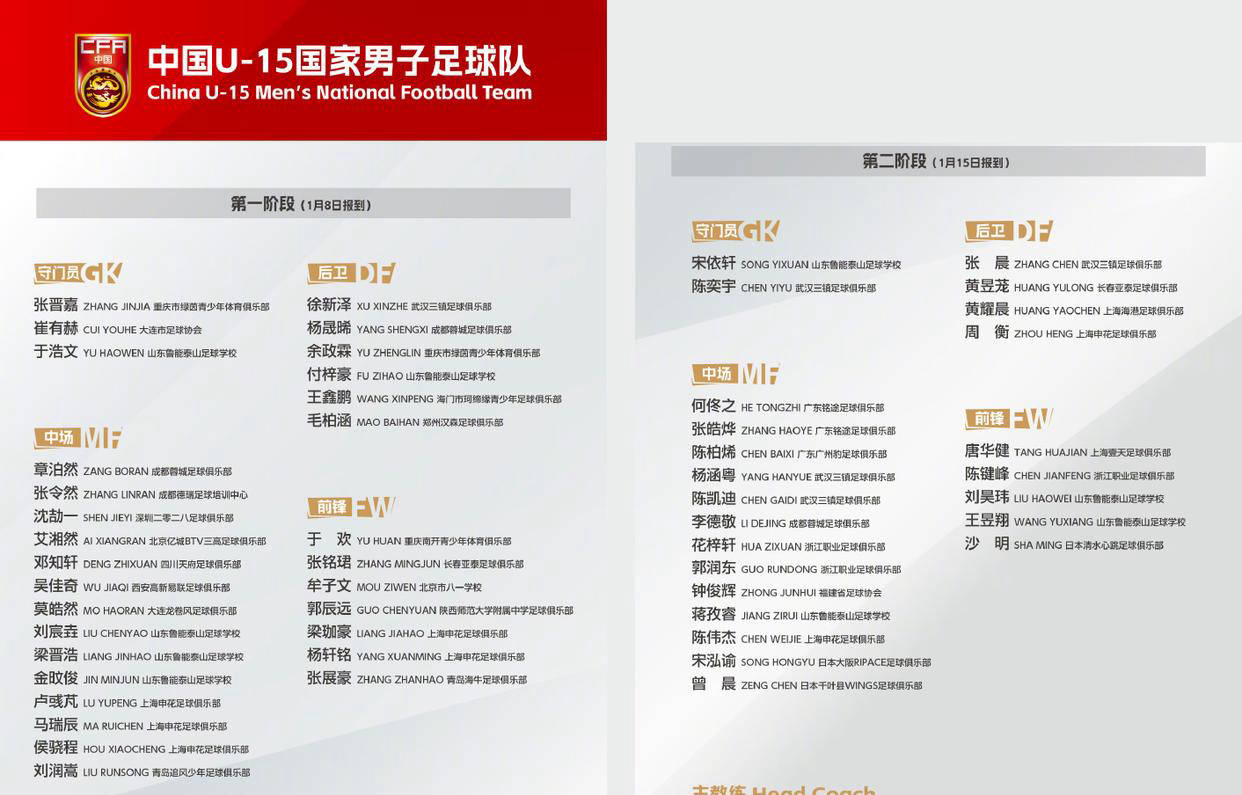 体育投注,体育投注平台,体育投注app,体育赛事,世界杯,奥运会,NBA,实时比分,体育新闻,欧洲杯,英超赛程,西甲赛程几个小时前,中国U15国家男子足球队最新的集训名单正式对外发布,共有54名优秀少年球员入选。此次集训旨在备战2028年U-17亚洲杯,训练时间定于2026年1月7日至2月11日,在深圳市分两个阶段进行。然而令人颇感意外的是,上个月刚刚摘得全国冠军桂冠的恒大足校,本次却无一人入选,这背后的原因值得关注。