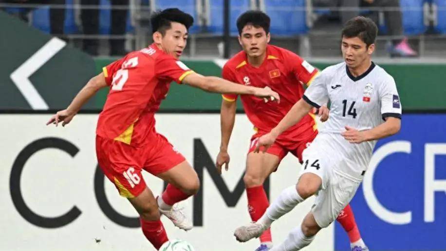 先是越南队和吉尔吉斯斯坦队比赛。吉尔吉斯斯坦队是第一次参加U23亚洲杯正赛。上半场两队情况很不一样,越南队控球时间少些,不过球员屈文康罚进点球,先取得领先。上半场快结束时,吉尔吉斯斯坦队远射把比分扳平,这还是他们队史在这项赛事的第一粒进球,看得出这支新队伍有潜力。比赛快结束时,越南队在禁区射门,对手失误把球踢进自家球门,越南队2 - 1赢了。虽然他们暂居小组榜首,但最后一轮比赛结果可能决定他们能不能进淘汰赛。
