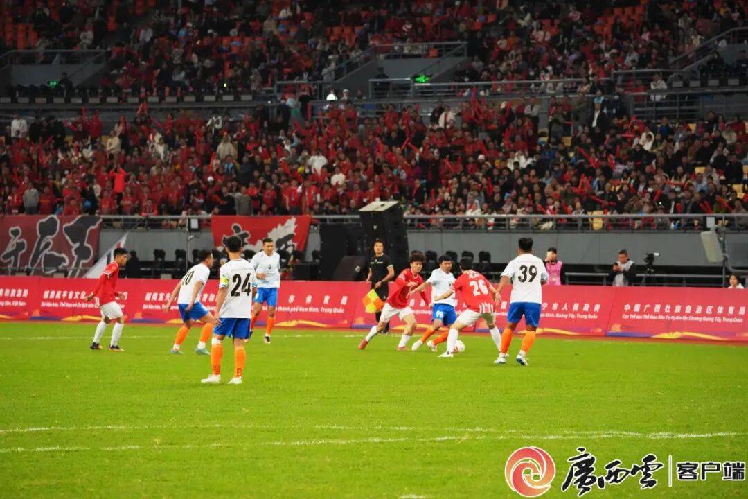 2月7日,赛事正式拉开序幕,历经淘汰赛角逐后,越南广宁省队、越南宣光省队、越南海防市队、中国广西代表队四支队伍开启单循环较量,最终经过8场绿茵比拼,赛事于11日迎来收官之战。当晚,广西体育中心灯光璀璨,在3.6万余名观众注目下,随着歌曲《山歌好比春江水》和舞龙舞狮等充满民族特色的表演结束,压轴进行的中国广西代表队对阵越南广宁省队的比赛正式打响。主场作战的广西队表现出强大的团队配合能力,以4∶1取胜。