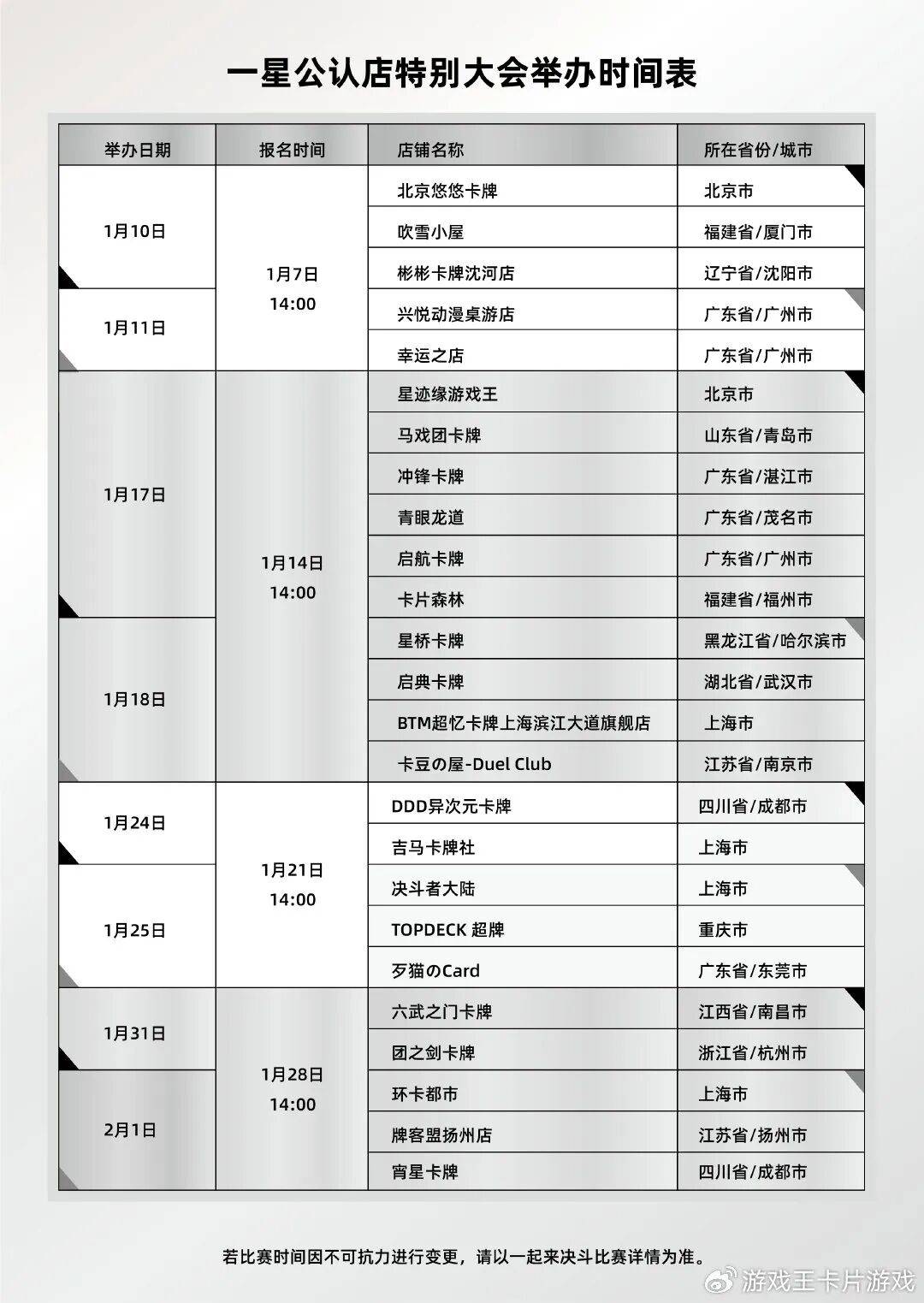 举办地点:各一星公认店(具体可查看官方微博置顶,旗舰公认店“决斗者大陆”同样参与本活动)